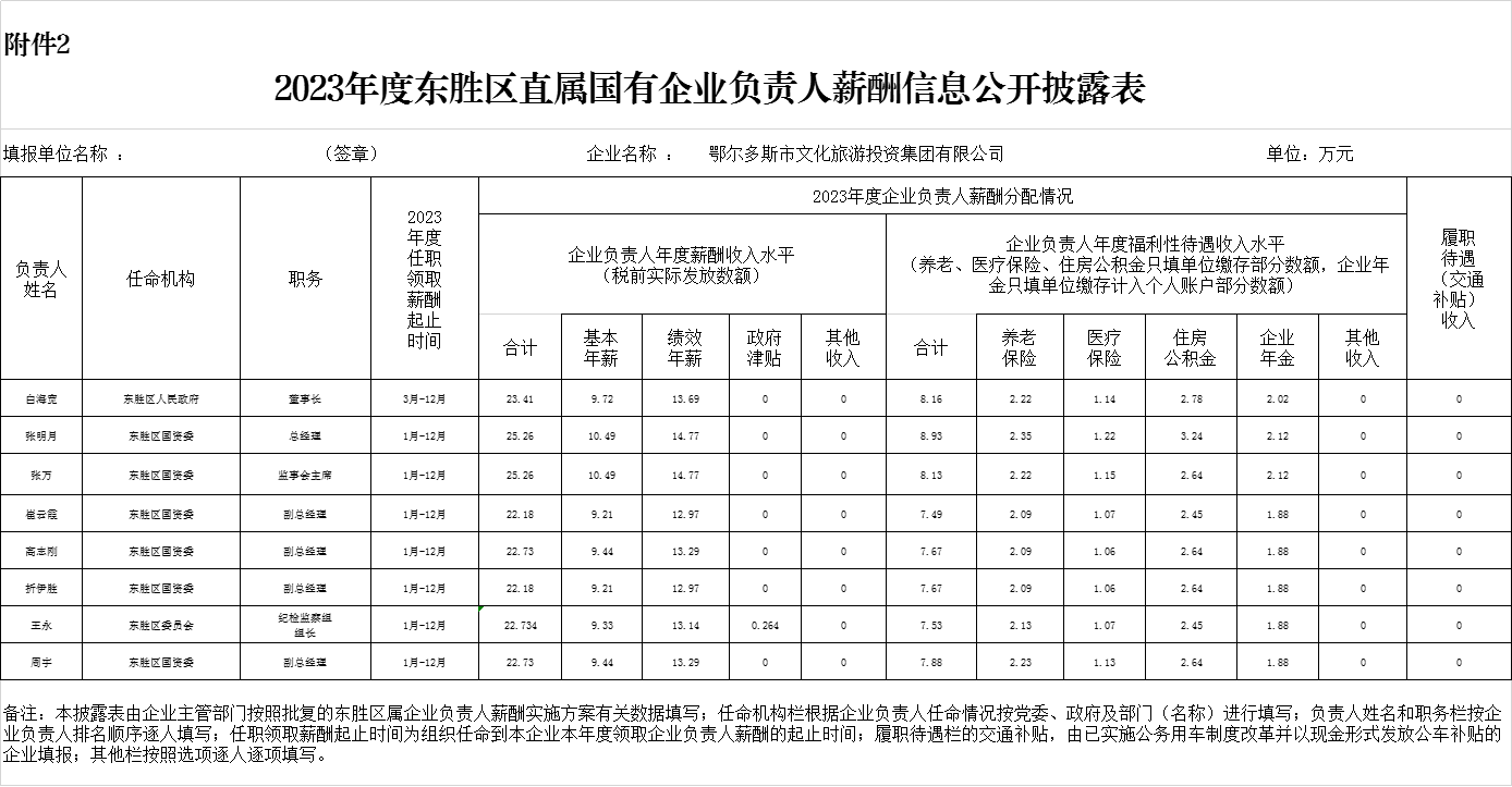 2023年度東勝區(qū)直屬國(guó)有企業(yè)負(fù)責(zé)人薪酬信息公開披露表